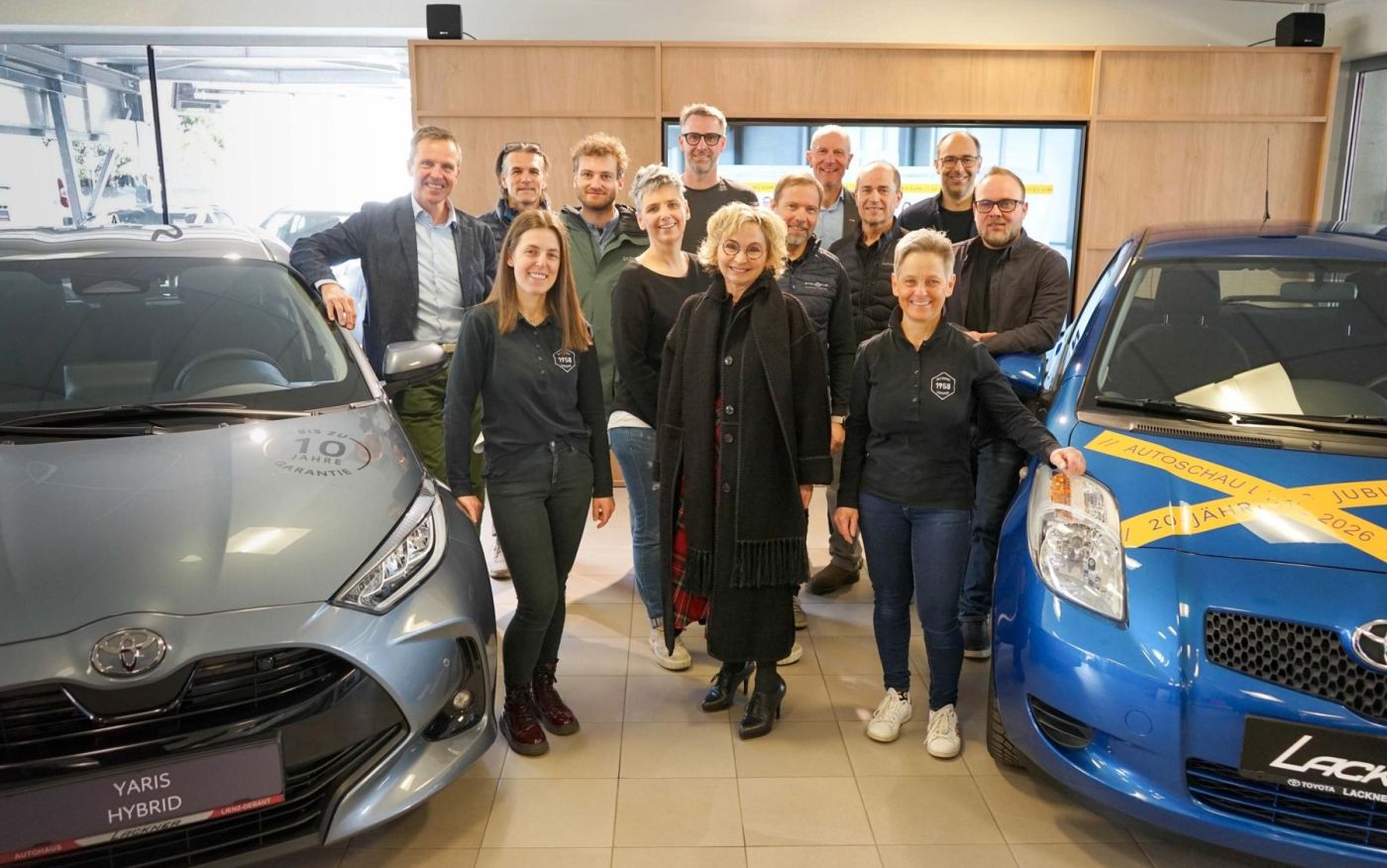 Die Osttiroler Autohändler mit Lienzer Bgm. LA DI Elisabeth Blanik und Johann Kollreider, Bezirksstellenleiter der Wirtschaftskammer Tirol im Autohaus Lackner (Nußdorf-Debant). Foto: Stadt Lienz / Lenzer